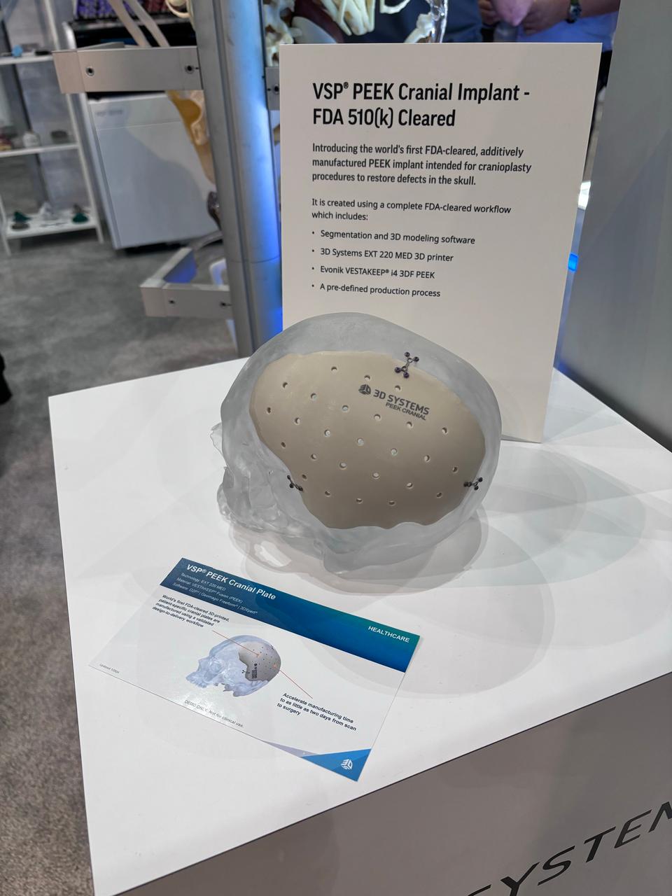The recent FDA 510(k) clearance of 3D Systems’ VSP® PEEK Cranial Implant marks a significant milestone in 3D printing in healthcare as it paves the regulatory pathway for other 3D-printed implants using PEEK. By leveraging the EXT 220 MED printer, software and process used for the cranial plate solution, our expert team can help device manufacturers expedite product development as well as the process to gain clearance for their own implants.